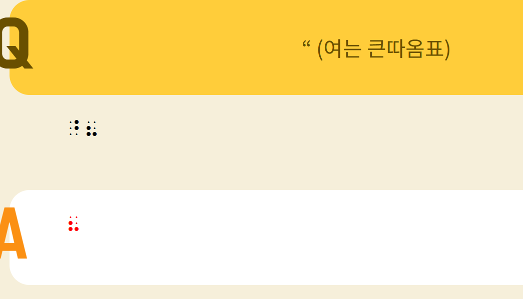 영어 점자연습에서 여는 큰따옴표가 이렇게 나오는데 맞나요?